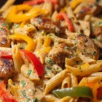 This Creamy Jerk Chicken Rasta Pasta is a vibrant, comforting dish that combines island spices with rich, indulgent cream and cheese. Tender, golden-browned chicken breasts are seasoned with bold jerk seasoning, releasing warm, smoky aromatics that mingle with garlicky butter and sautéed colorful bell peppers. The sauce is luxuriously creamy from a mix of heavy cream and half-and-half, with melted mozzarella and freshly grated Parmesan folded in for a silky, cheesy finish. Texturally, you get tender pasta, crisp-tender pepper slices, and juicy chicken in every bite. It is ideal for a cozy weeknight dinner when you want something special without a lot of fuss, or for a casual dinner with friends who enjoy bold flavors. The dish travels well to potlucks and keeps beautifully for lunch the next day, making it both impressive and practical.
